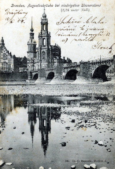 Niedrigwasser an der Augustusbrücke um 1904
