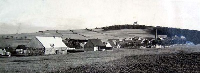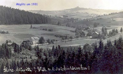 Das ehemalige Böhmisch Müglitz nach 1931 mit der noch existierenden Grenzschänke unten links.