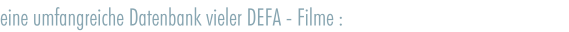 Es handelt sich hierbei um eine private, nicht kommerzielle Fanseite für alle Freunde der DEFA-Filme und ihrer Darsteller. Sie dient also keinem gewerblichen Zweck und ist aus unserem Hobby heraus entstanden. Die gesammelten Informationen zu Filmen und Schauspielern sollen dem interessierten Besucher lediglich einen Überblick über das Filmschaffen in Babelsberg von 1946 bis 1992 geben. Für Vollständigkeit und Richtigkeit können wir nicht garantieren. Unter den Texten haben wir jeweils den Verfasser vermerkt, zu den Fotos ist, wenn bekannt, eine Angabe zur Herkunft bzw. der Name des Fotografen beigefügt. Eine Auflistung der literarischen Quellen finden Sie auf der Seite "Infos". Die Jahresangaben bei den Filmen und in den Auswahlfilmographien der Darsteller beziehen sich auf das jeweilige Datum der Premiere (manchmal dadurch auch erst nach dem Tode von mitwirkenden Schauspielern). Ausnahmen bilden die Produktionen, die wegen damaligen Verbots erst erheblich später uraufgeführt wurden. Hier haben wir das Jahr angegeben, in dem sie gedreht wurden.